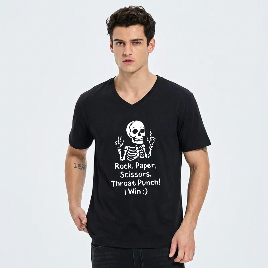 Funny Skeleton Rock Paper Scissors Throat Punch T-Shirt Humor Design