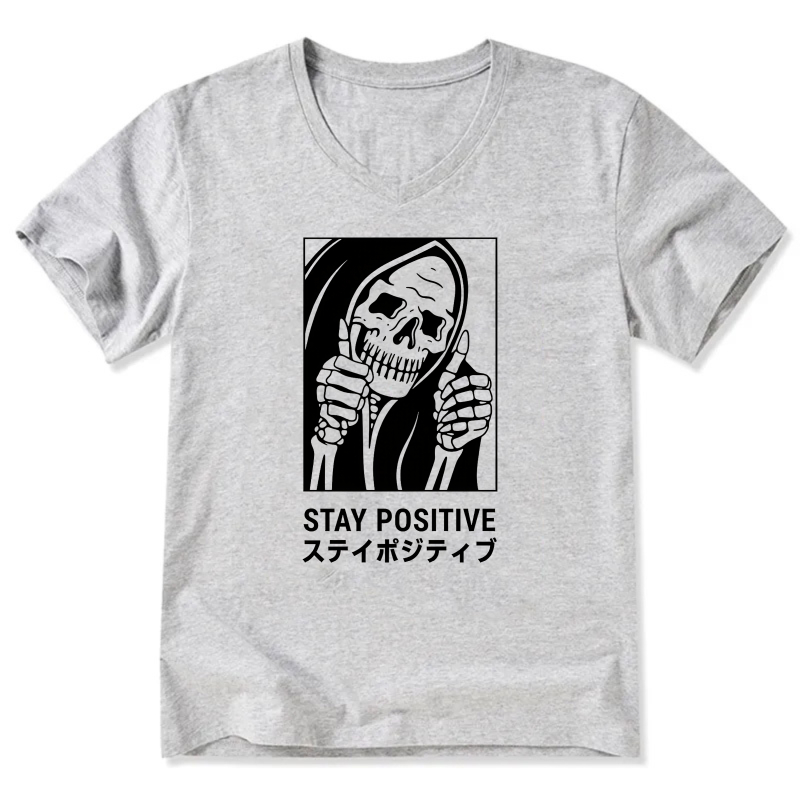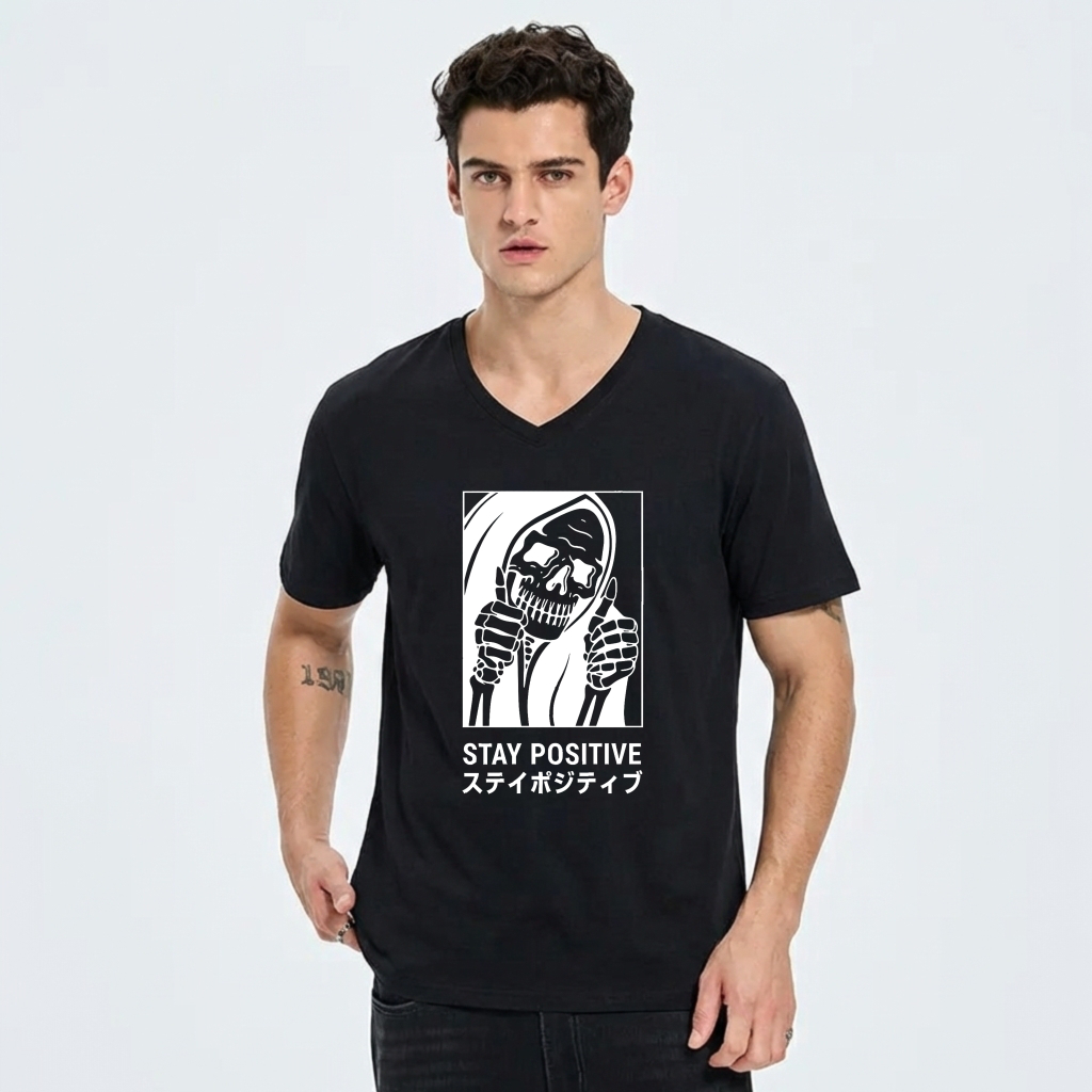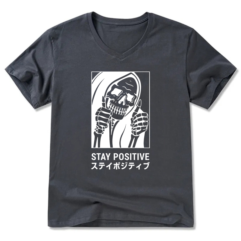 Stay Positive Skull Graphic T-Shirt Black Men Women Casual Wear
